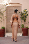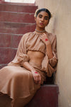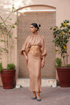 Our Ara slip skirt crafted in soft pure cotton silk blend fabric, with side ties adorned in ruby crystal beads. Pair with Jasmine top in Earth.