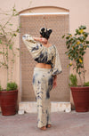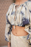 Our front dori top in cotton, with ruffled neckline and sleeves. The dori is finished with pearl beads and tila dhaga.