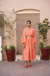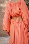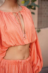 Our front dori top in pure cotton silk fabric, with ruffled neckline and sleeves. The dori is finished with pearl beads and tila dhaga.