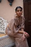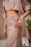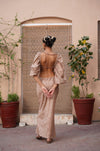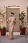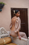Our loved Jasmine top in embroidered cotton silk fabric, with ruffle detail neckline and sleeves. The braided back straps are adorned in ruby crystal beads.